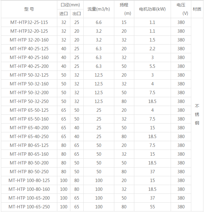 | MT-HTP 65-50-160 | 65 | 50 | 25 | 32 | 7.5 | 380 | |