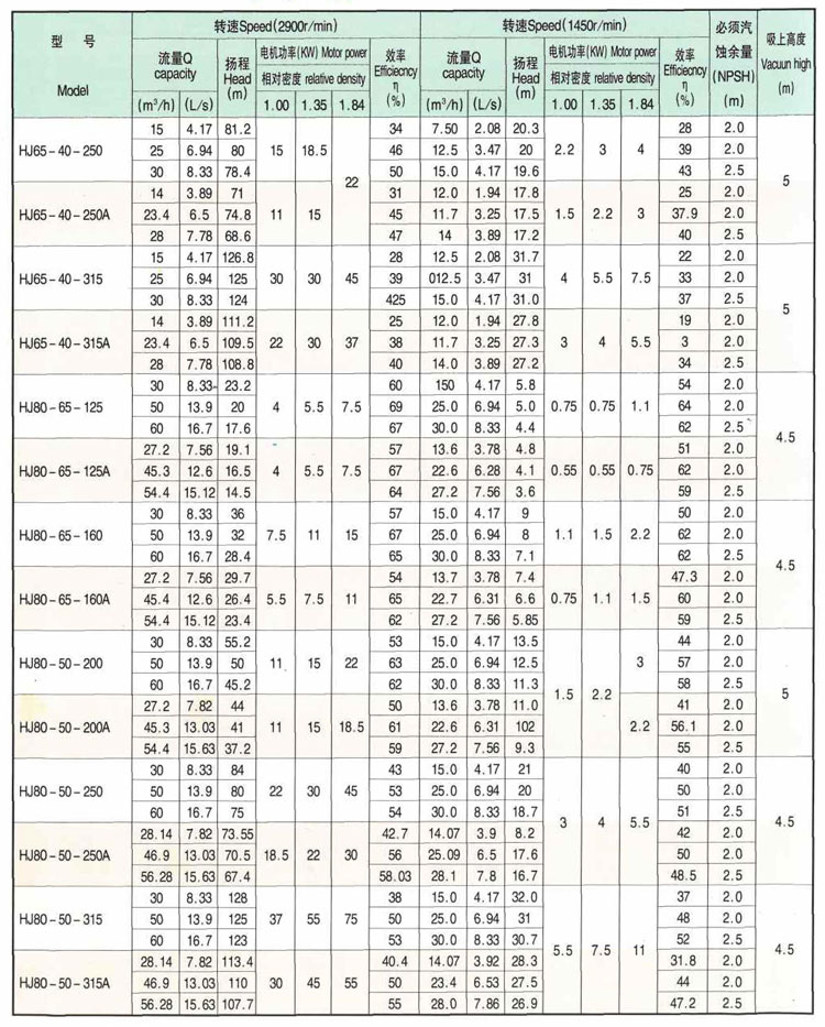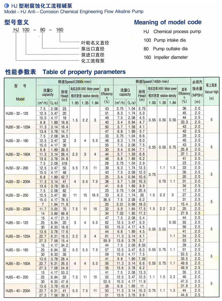HJ型单级单吸悬臂式化工流程碱泵是在IH系列泵的基础上,参照国外技术并结合用户实际使用后而优化设计的新产品,其额定性能和安装尺寸符合!502858标准,制造技术条件符合!505199标准,主要适用于化工流程中含固量小于5O%之内的浆液以及含结晶杂质介质的输送。与lH泵相比,